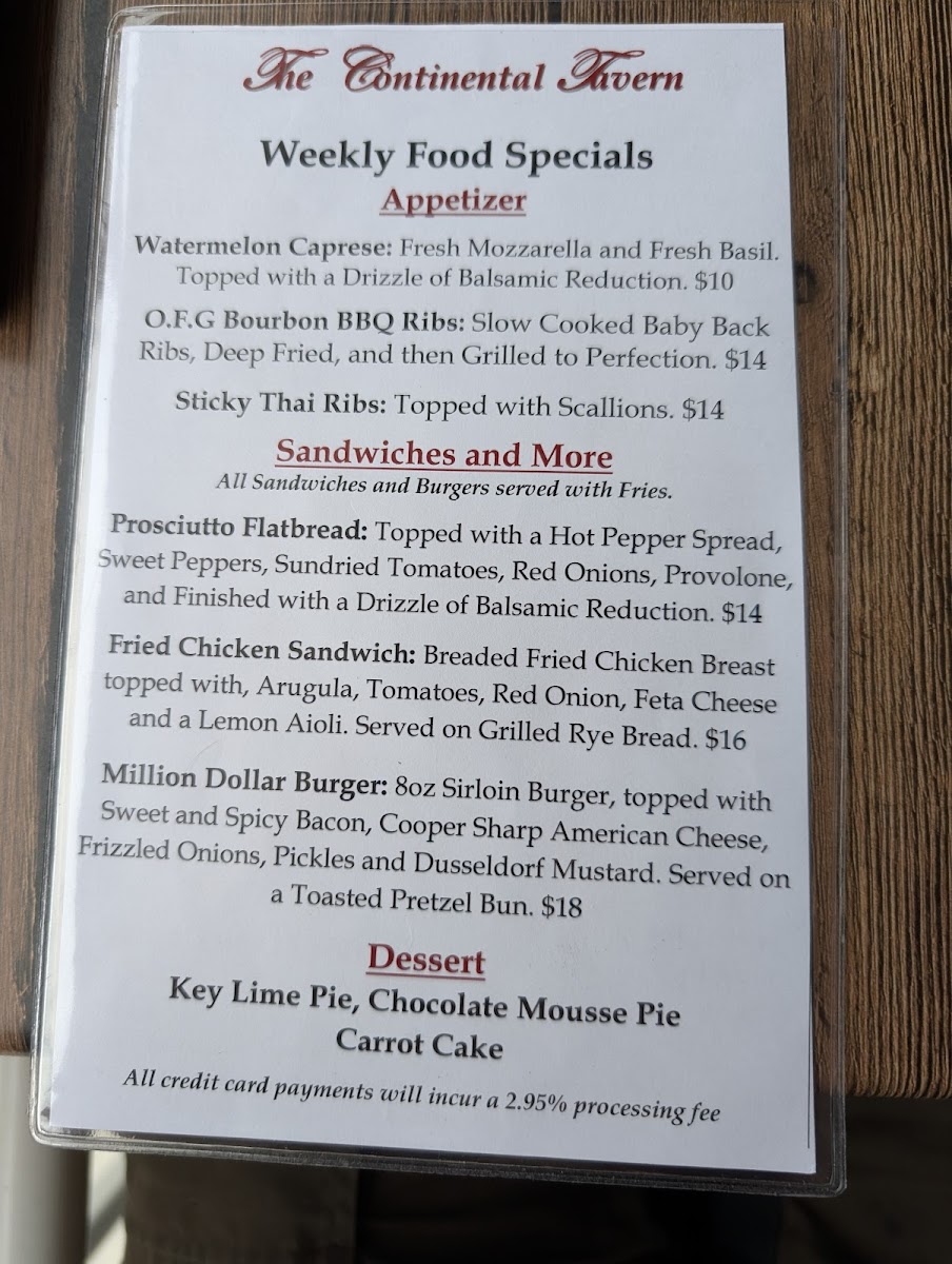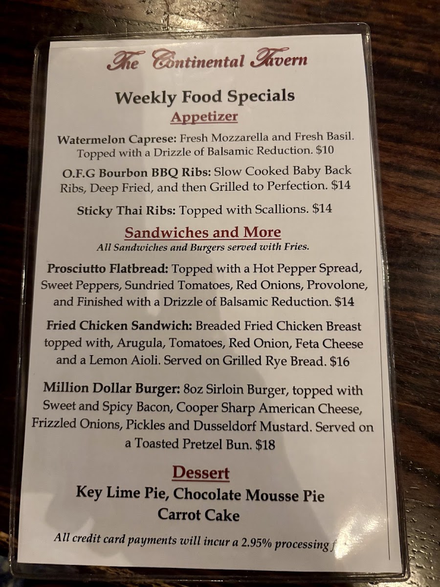 Whether you're in for a casual drink or a full meal with friends, Continental Tavern promises to deliver comfort food that doesn’t compromise on quality, served with a side of warmth that makes every visit a delightful experience. Come hungry and leave happy; this local tavern is ready to welcome you with its delicious eats!