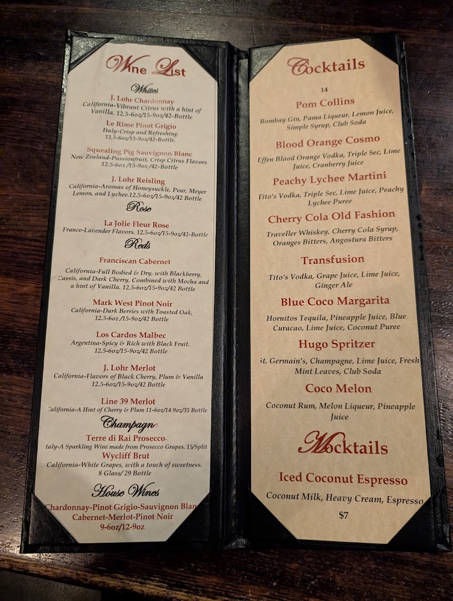For burger lovers, the Continental Burger is a must-try, featuring sautéed mushrooms, caramelized onions, and creamy Swiss cheese. Each burger is cooked to perfection and served with golden fries that are the ultimate comfort food. And if you’re in the mood for something heartier, their French Dip—loaded with shaved prime rib and served with a side of savory au jus—will certainly satisfy any craving.