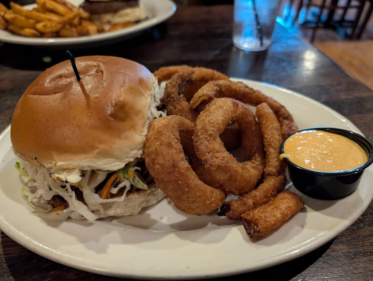 The cuisine here is an expertly crafted mix of classic American favorites and unique flavor combinations. One standout from their menu is the Wings, offered in tantalizing flavors such as Honey BBQ, Garlic Parmesan, and the intensely flavorful Rogue Dead Guy Hot. Each bite is plump, juicy, and bursting with flavor, perfectly complemented by their rich bleu cheese dressing. If you're a fan of unique appetizers, don't miss the Philly Cheesesteak Egg Roll—a delicious handheld delight stuffed with shaved ribeye, caramelized onions, and Cooper Sharp cheese that plays wonderfully with the accompanying Sriracha ketchup.